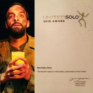 "The Farewell" poetry by Yianis Ritsos performed by Phytos Stratis and Directed by Ioanna Katsarou was awarded with the BEST poetry show of 2018.
